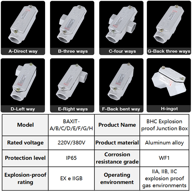 मॉडल | BAXIT-A/B/C/D/E/F/G/H | उत्पाद का नाम | BHC विस्फोट प्रूफ जंक्शन बॉक्स |
